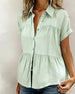 SPECIFICATIONS Top Type: Blouses Style: Casual Material: Cotton Blends Occasion: Daily Neckline: V neck_V Pattern Type: Solid Color Sleeve Type: Regular sleeve Sleeve Length: Short Sleeve Fit Type: Regular Season: Spring,Summer Details: Buttons Package Includes: 1 x Blouse SIZE TABLE Size Bust Length CM INCH CM INCH S 97 38.19 6...