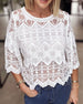 Sheer Mesh Lace Three-Quarter Sleeve Blouse