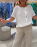 SPECIFICATIONS Top Type: Blouses Style: Casual Material: Cotton Blends Occasion: Daily Neckline: V neck_V Pattern Type: Solid Color Sleeve Type: Regular sleeve Sleeve Length: Short Sleeve Fit Type: Regular Season: Spring, Summer, Fall Details: Buttons, Shirred Package Includes: 1 x Blouse SIZE TABLE Size Bust Length cm inch ...