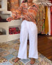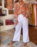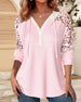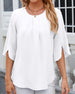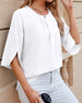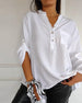 SPECIFICATIONS Top Type: Blouses Style: Elegant Material: Cotton Blends Occasion: Daily Neckline: V neck_V Sleeve Type: Flare Sleeve Sleeve Length: 3/4 Sleeve Fit Type: Regular Season: Spring, Summer, Fall Details: Patchwork, Buttons Package Includes: 1 x Blouse SIZE TABLE Size Bust Length CM INCH CM INCH S 95 37.40 68 2...