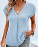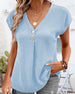 SPECIFICATIONS Top Type: T-shirt Style: Casual Material: Cotton Blends Occasion: Daily Neckline: V neck_V Pattern Type: Solid Color Sleeve Type: Raglan sleeve Sleeve Length: Short Sleeve Fit Type: Regular Season: Spring, Summer, Fall Details: Buttons Package Includes: 1 x T-shirt SIZE TABLE Size Bust Length Shoulder width c...