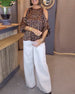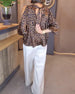 Tie-Strap Off-Shoulder Leopard Print Blouse