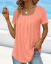 SPECIFICATIONS Top Type: T-shirt Style: Elegant Material: Cotton Blends Occasion: Daily, Work Neckline: Square Neck Pattern Type: Solid Color Sleeve Type: Regular sleeve Sleeve Length: Short Sleeve Fit Type: Regular Season: Spring, Summer, Fall Details: Shirred Package Includes: 1 x T-shirt SIZE TABLE Size Bust Length CM INCH...