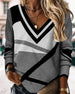 SPECIFICATIONS Top Type: Tops Style: Casual Material: Cotton Blends Occasion: Daily Neckline: V neck_V Pattern Type: Color Block Sleeve Type: Regular sleeve Sleeve Length: Long Sleeve Fit Type: Regular Season: Spring, Fall, Winter Package Includes: 1 x Top SIZE TABLE Size Bust Length CM INCH CM INCH S 95 37.40 68 26.77 M...