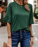 SPECIFICATIONS Top Type: Tops Style: Elegant, Business Material: Cotton Blends Occasion: Daily, Work Neckline: Round Neck Pattern Type: Solid Color Sleeve Type: Flare Sleeve Sleeve Length: Half Sleeve Fit Type: Regular Season: Spring, Summer, Fall Details: Patchwork, Buttons Package Includes: 1 x Top SIZE TABLE Size Bust Length ...