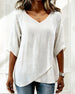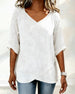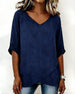 SPECIFICATIONS Top Type: Tops Style: Casual Material: 80% Cotton, 20% Linen Occasion: Daily Neckline: V neck_V Pattern Type: Solid Color Sleeve Type: Regular sleeve Sleeve Length: 3/4 Sleeve Fit Type: Regular Season: Spring,Summer Details: Irregular Package Includes: 1 x Top SIZE TABLE Size Bust Length CM INCH CM INCH S 97 ...