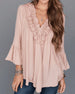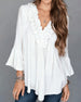 SPECIFICATIONS Top Type: Blouses Style: Casual Material: Cotton Blends Occasion: Daily Neckline: V neck_V Pattern Type: Solid Color Sleeve Type: Flare Sleeve Sleeve Length: Long Sleeve Fit Type: Regular Season: Spring,Fall Details: Ruffle Package Includes: 1 x Blouse SIZE TABLE Size Bust Length CM INCH CM INCH S 97 38.19 65 25.5...