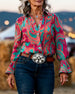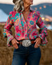 Ruffle V-Neck Long-Sleeve Blouse